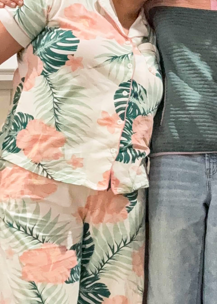 Women’s Floral Pattern Cotton Pajama Set | Short Sleeve Button Down Sleepwear