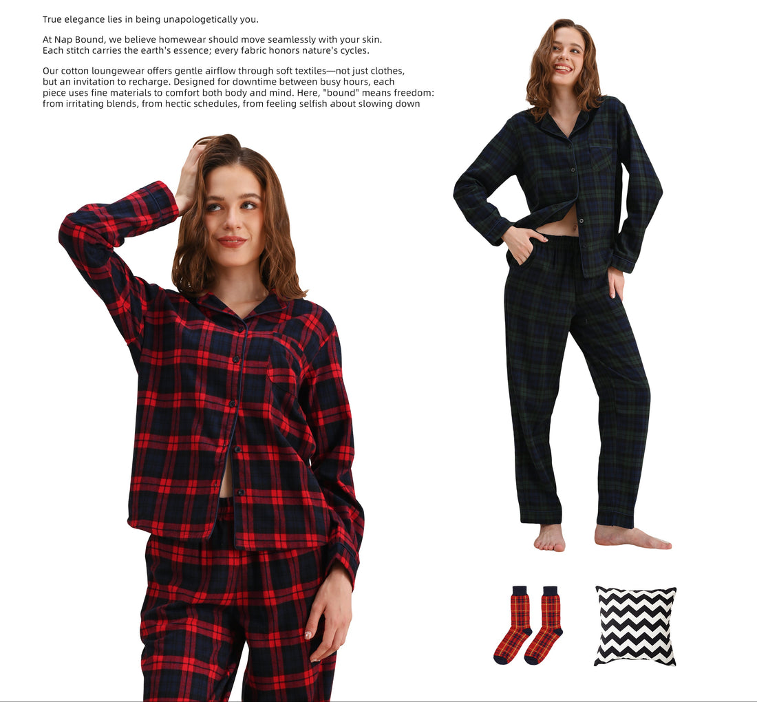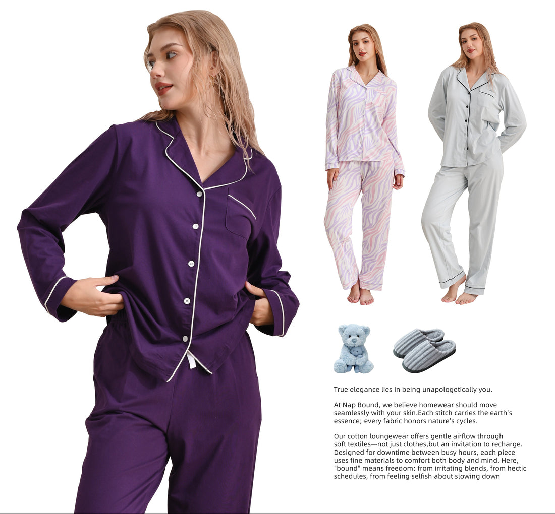 At NapBound, we work with carefully selected cotton fabrics that feel gentle against the skin and move effortlessly with the body. No synthetic blends, no unnecessary treatments—just clean, breathable comfort designed for rest, relaxation, and unhurried living.